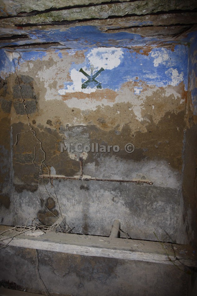 Bagni con disegno sul muro molto rovinato