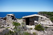 Dall'abitato di Carloforte, proseguire verso sud lungo la costa su SP 103. Svoltare a sinistra dove indicato (su una pietra) " BUE MARINO LA CONCA MEZZALUNA" e seguire la strada fino alla costa. La strada asfaltata termina e gira attorno alla postazione telemetrica della Batteria Tommaso Zonza. L'opera disponeva di quattro cannoni da 120/45 modello Amstrong 1918 disposti in piazzole e mitragliatrici antiaeree, Scotti, Breda 37 e Colt. La batteria entrò in funzione solo nel 1943 contro gli aerei americani. Le strutture sono in buono stato ed immerse nella fitta vegetazione. |